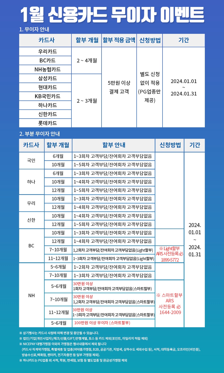1월 신용카드 무이자 할부안내